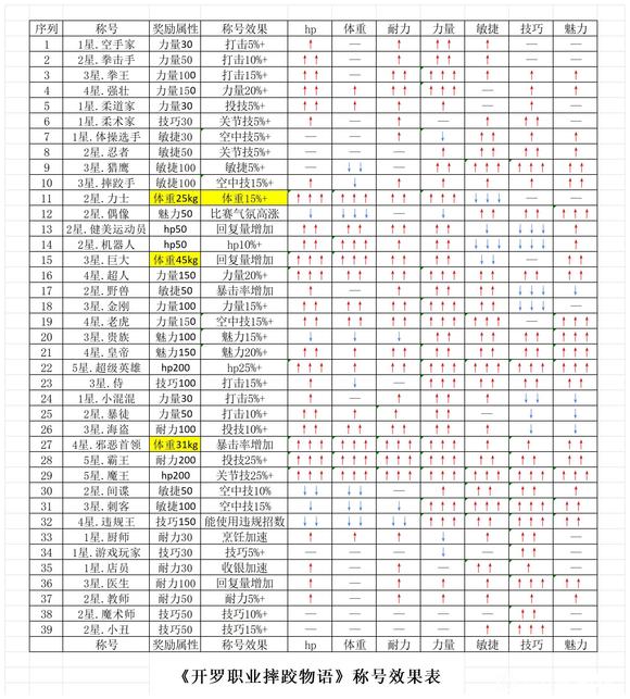 1.属性强化:体力》力量》技巧/耐力》其他,“体力”防止被对手一套连招带走,“力量”大于对手才能施展必杀技,“技巧”影响被对手殴打的时候反击,“耐力”影响被3秒压制的时候反击,“敏捷”因为食物砸太多后期体重太重敏捷没啥用,比赛氛围可以靠拖比赛时间拉满“魅力”不重要。
