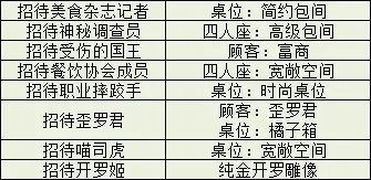 特殊招待在某些条件达成的情况下触发,会获得桌子、顾客或者是装饰物