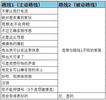 答复的主动多就会触发主动结局(下表路线1),反之则是被动结局