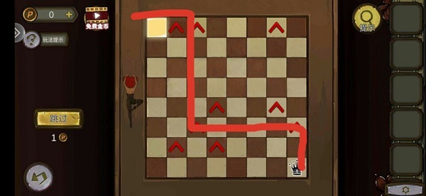 1、根据狗窝,画像,棋盘,地毯得出沙发旁箱子的密码,拿到狗粮罐头给狗狗吃,得到棋子,完成棋盘游戏(如图)拿到钥匙开琴。