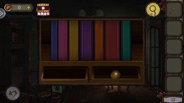22、用圆片打开右边房间椅子上的盒子,拿到宝石,组合得到六角星宝石,打开船模型。得到书房钥匙。